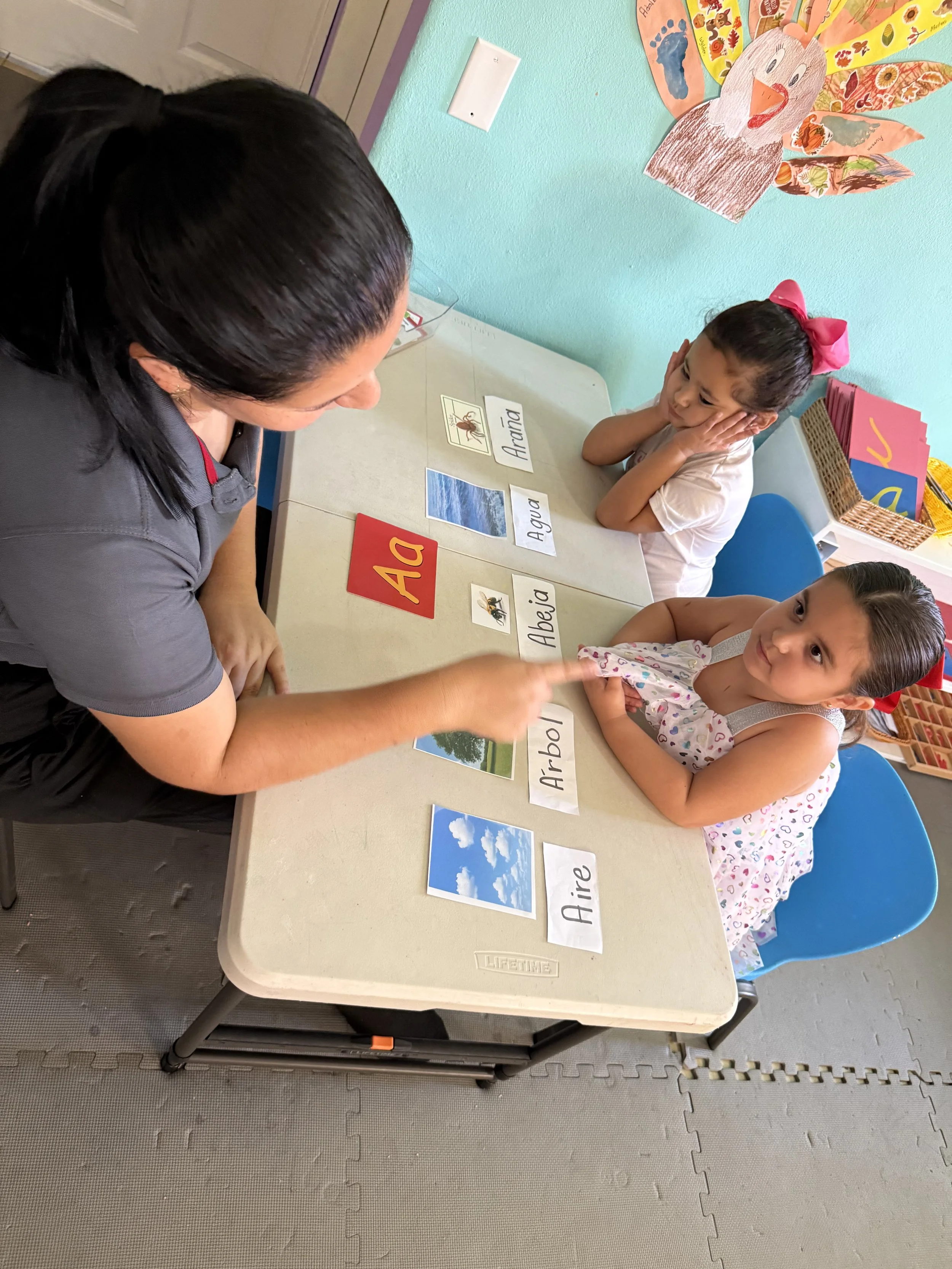 Nuestras espaciosas instalaciones con aire acondicionado están cuidadosamente diseñadas para fomentar el aprendizaje Montessori y un cuidado infantil de alta calidad. El aula Montessori cuenta con espacios cuidadosamente preparados que representan las cinco áreas principales de aprendizaje: Vida Práctica, Sensorial, Lenguaje, Matemáticas y Aprendizaje Cultural (incluyendo Geografía).